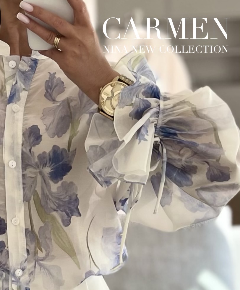 BLUZKA CARMEN Z DOMIESZKĄ LYOCELLU BIAŁO-NIEBIESKA
