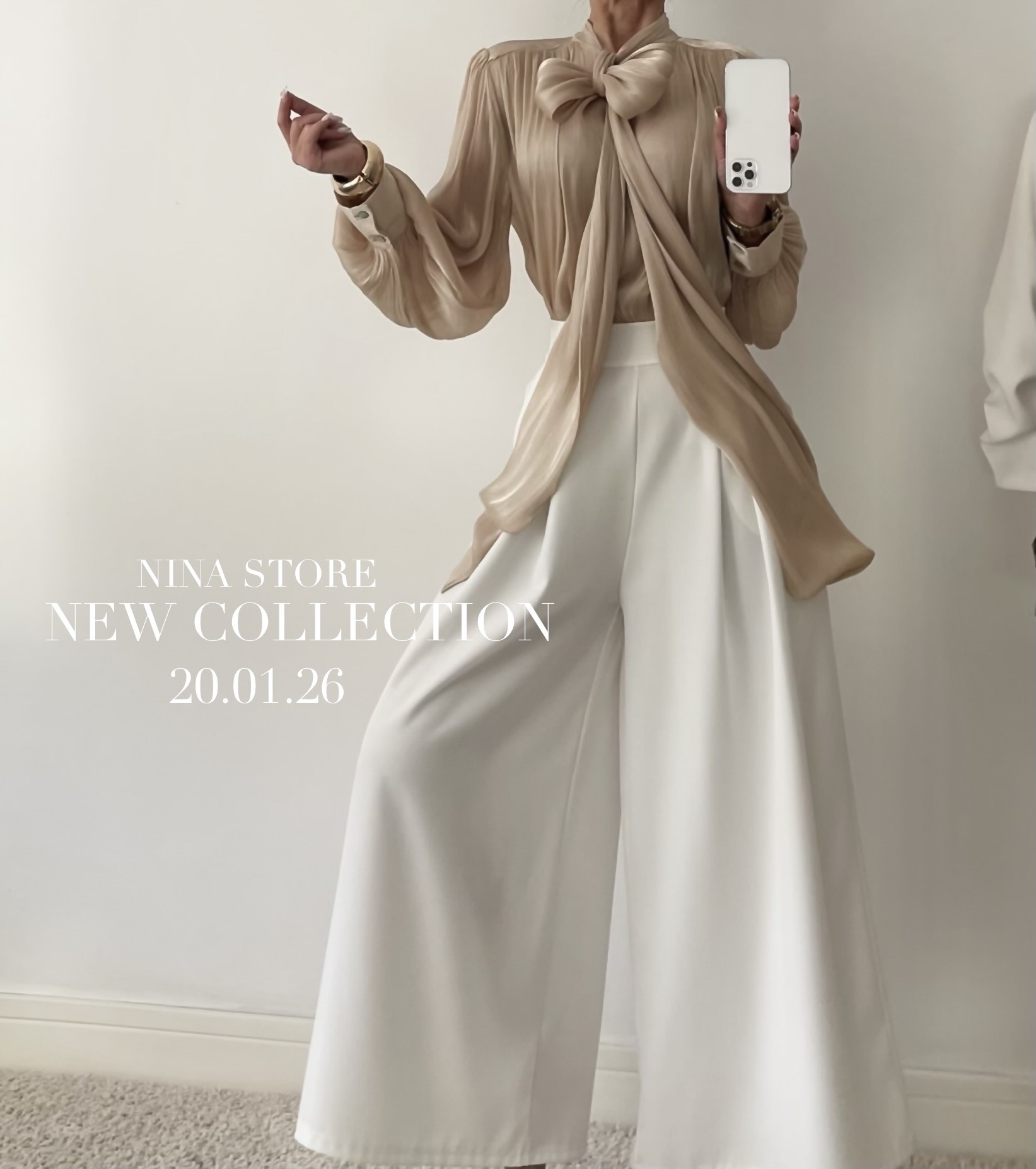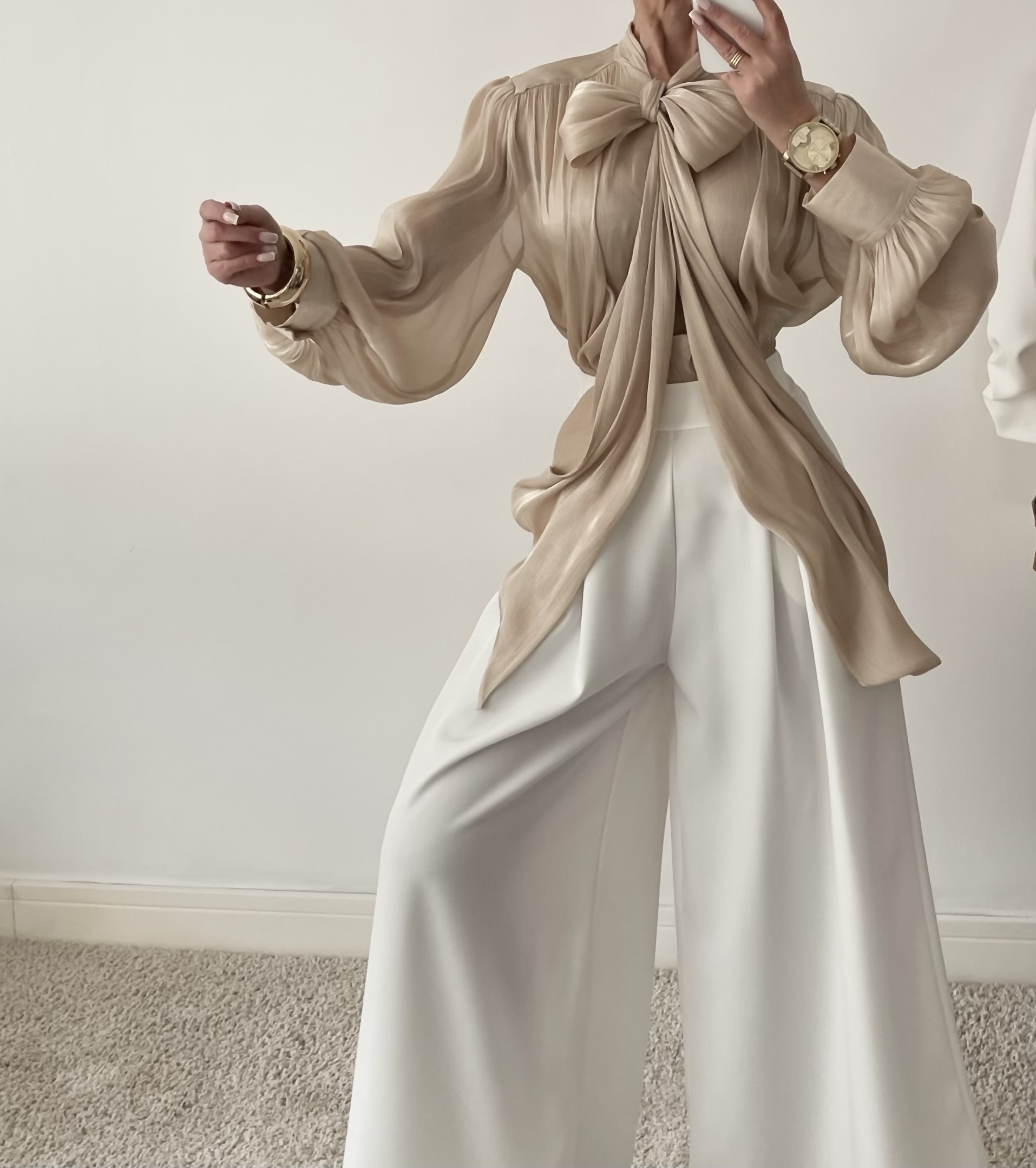 BLUZKA Z WIĄZANIEM SOFIA BEŻOWA