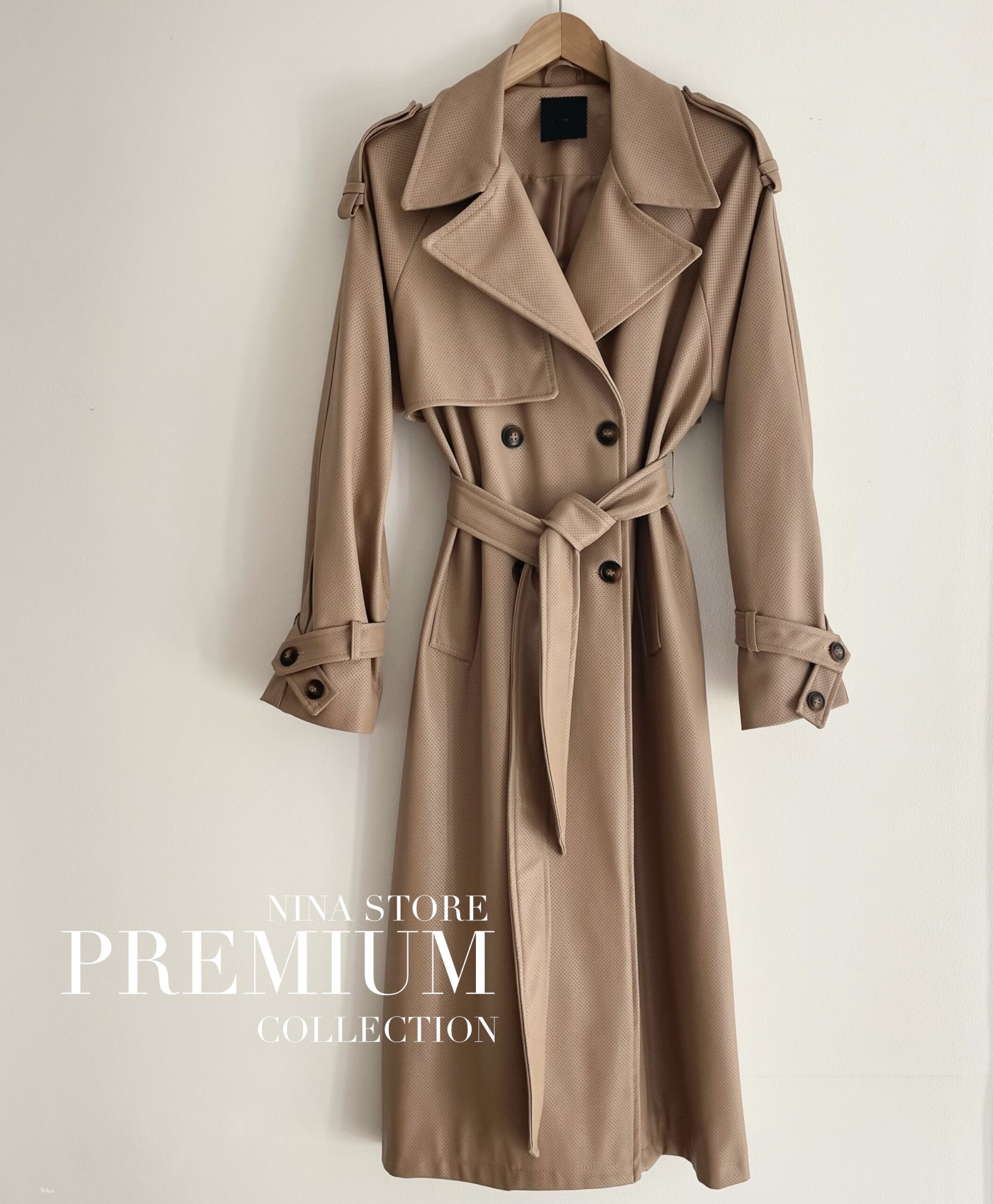 DŁUGI TRENCZ Z EKO SKÓRY CAMEL