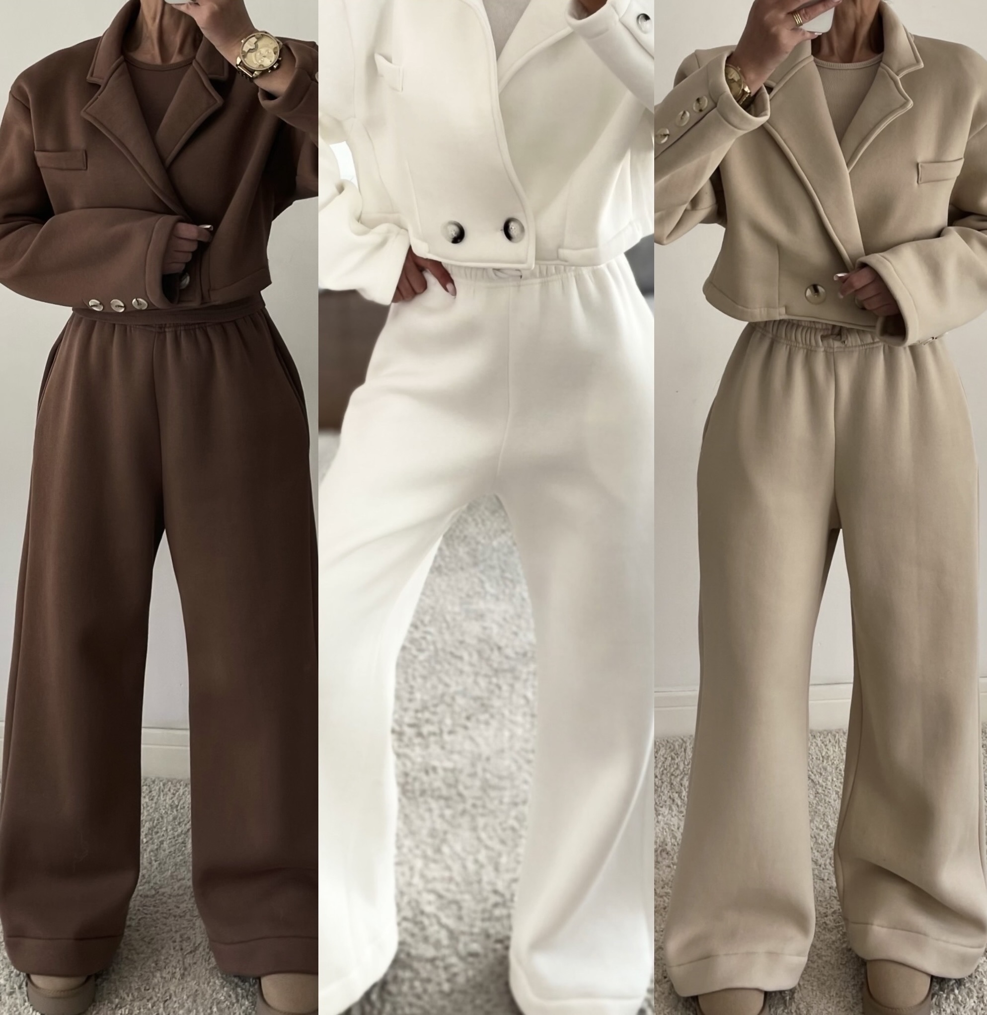 KOMPLET DRESOWY ANYA ŚMIETANKOWY TOP / MARYNARKA / SPODNIE