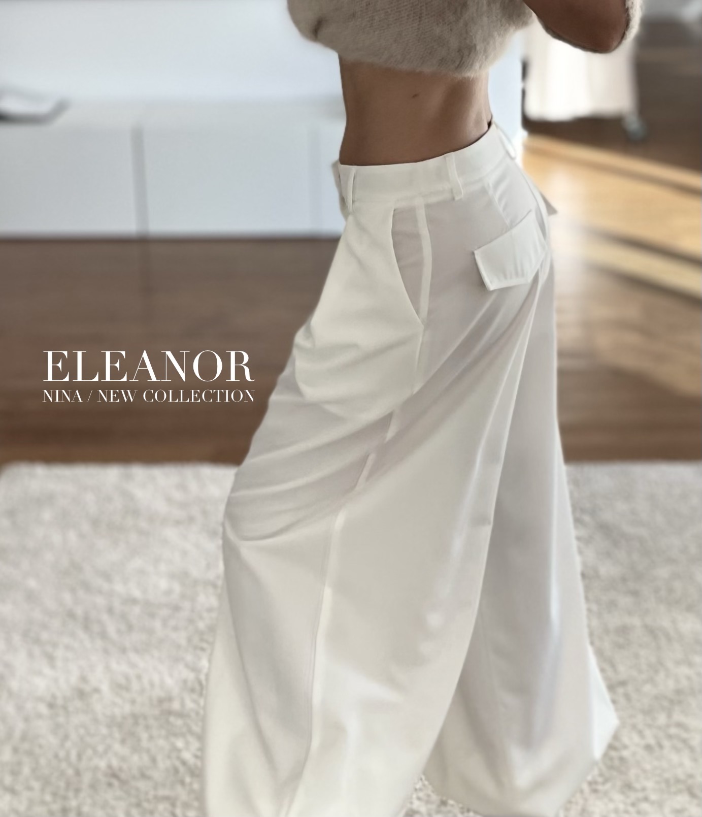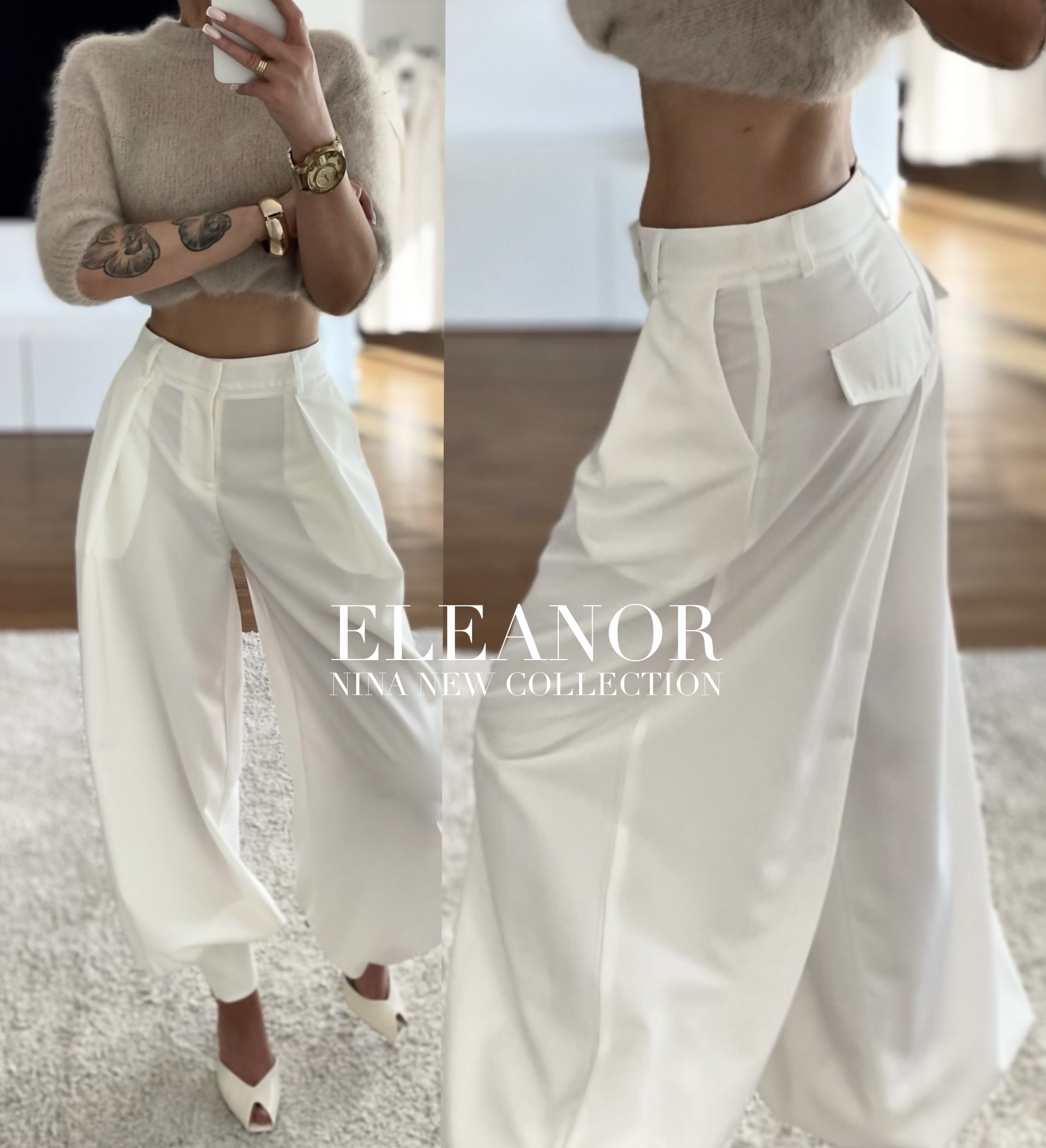 SPODNIE Z MANKIETAMI ELEANOR BIAŁE